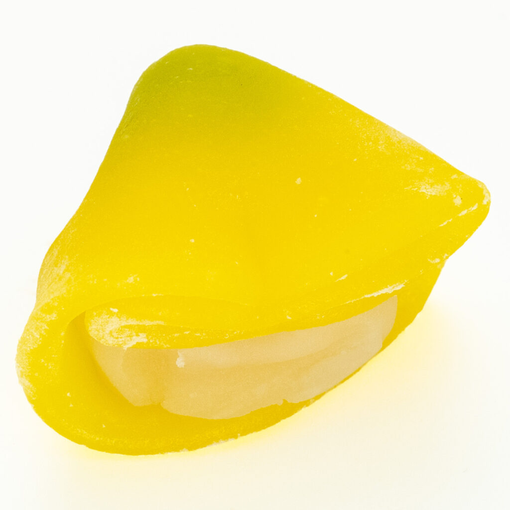緑色で中央をぼかした黄色のういろうを、白あんを芯にして折りたたみました。ヘラ目を入れて仕上げました。