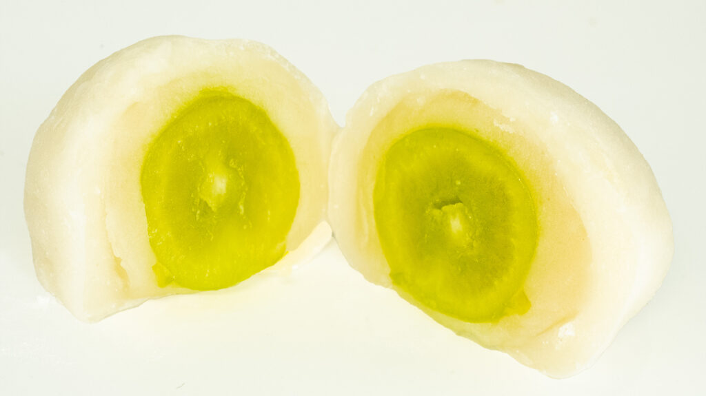 贅沢に丸ごと一粒のシャインマスカットを使い、白あんとともにやわらかいお餅で包みました。