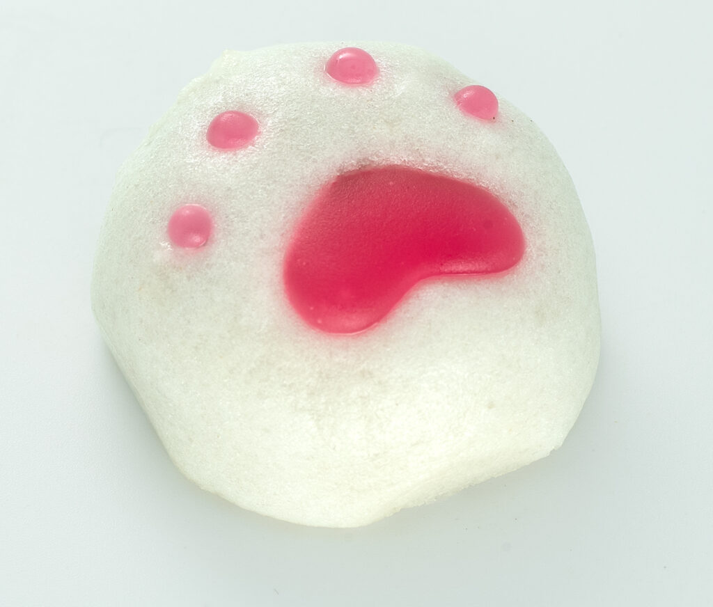 ピンク色の羊羹で肉球をつけました。