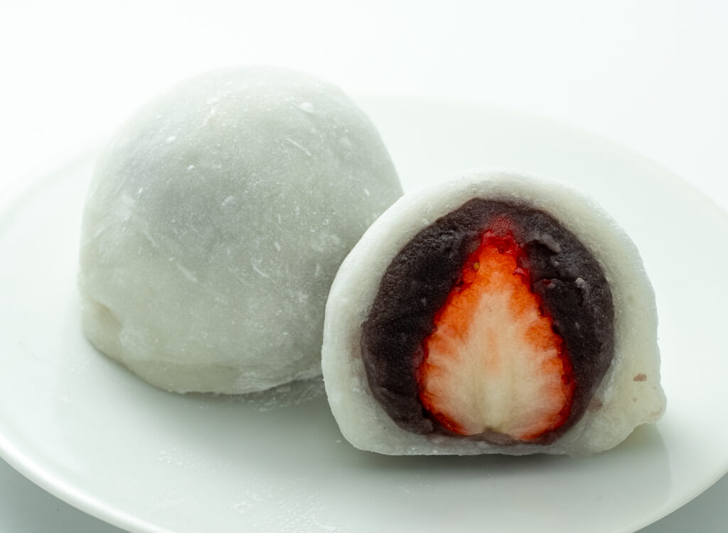 静岡県産「紅ほっぺ」を使用。北海道産小豆を使ったこし餡の大福です。