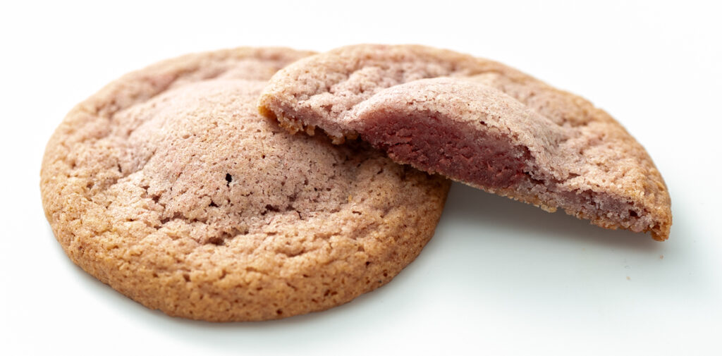 苺パウダーを練り込んだしっとり食感のサブレ生地で、なめらかな苺味の生チョコを閉じ込めました。苺の香りとやさしい酸味が広がります。